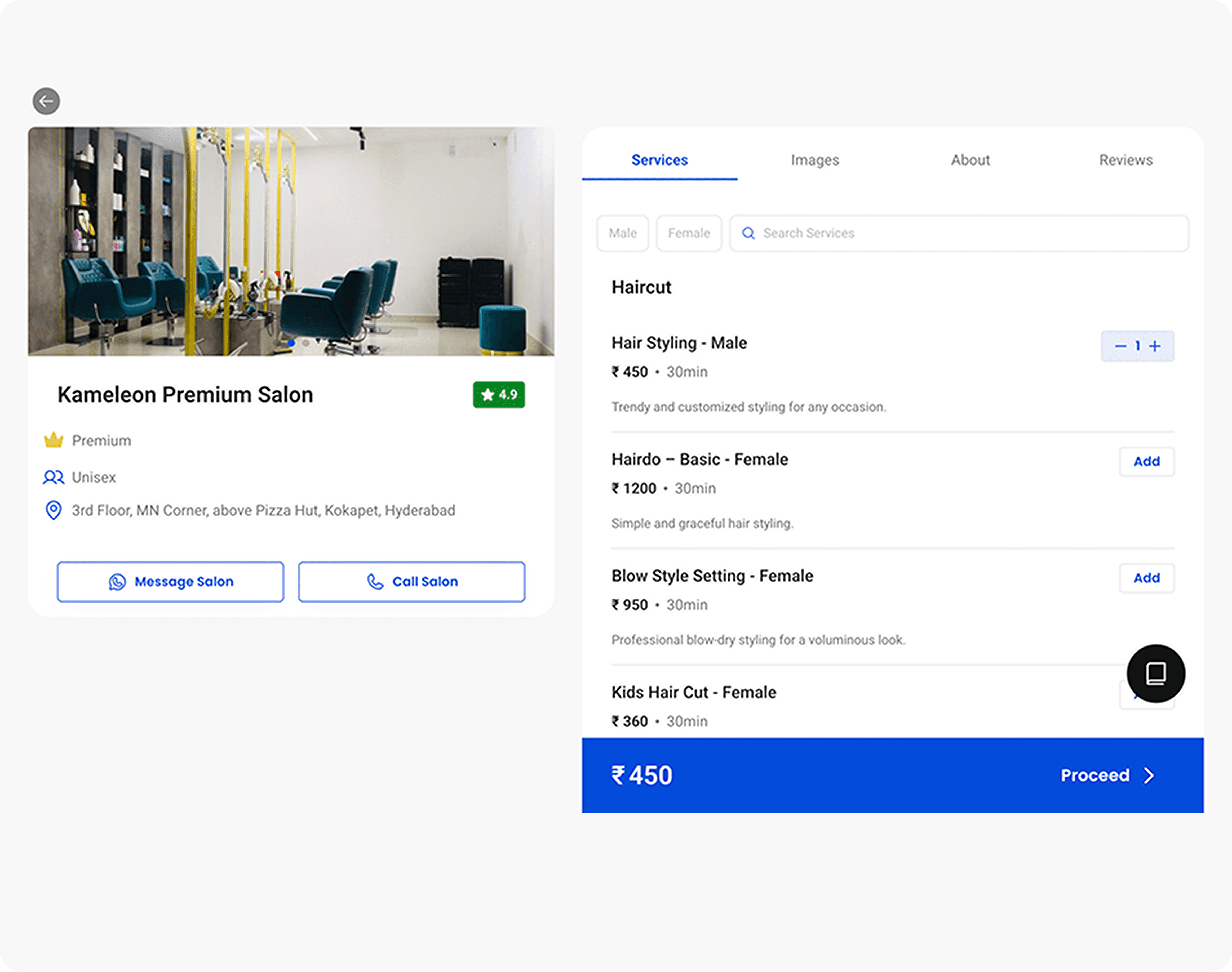 Salon Profile Page – Display your services, pricing, and offers in one place.